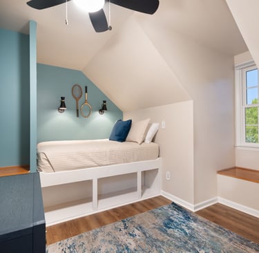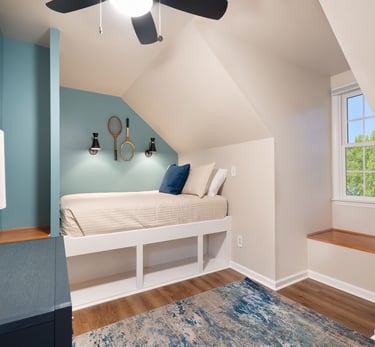 This bedroom lacks privacy as it provides access to the 3rd floor bedrooms.